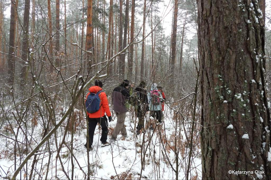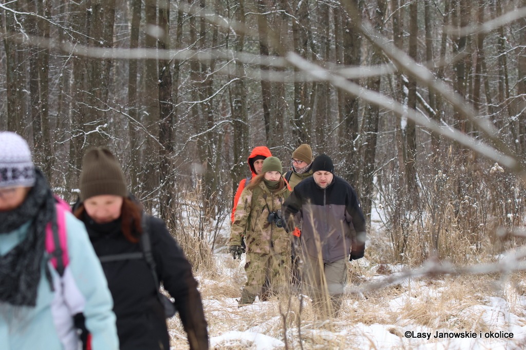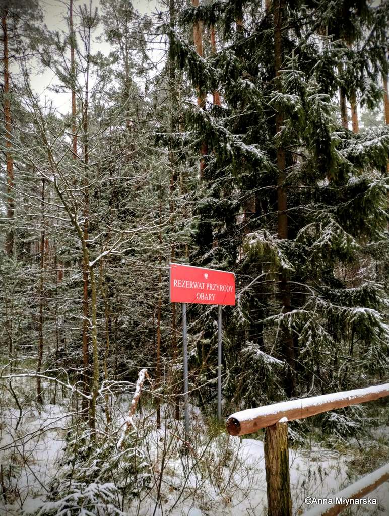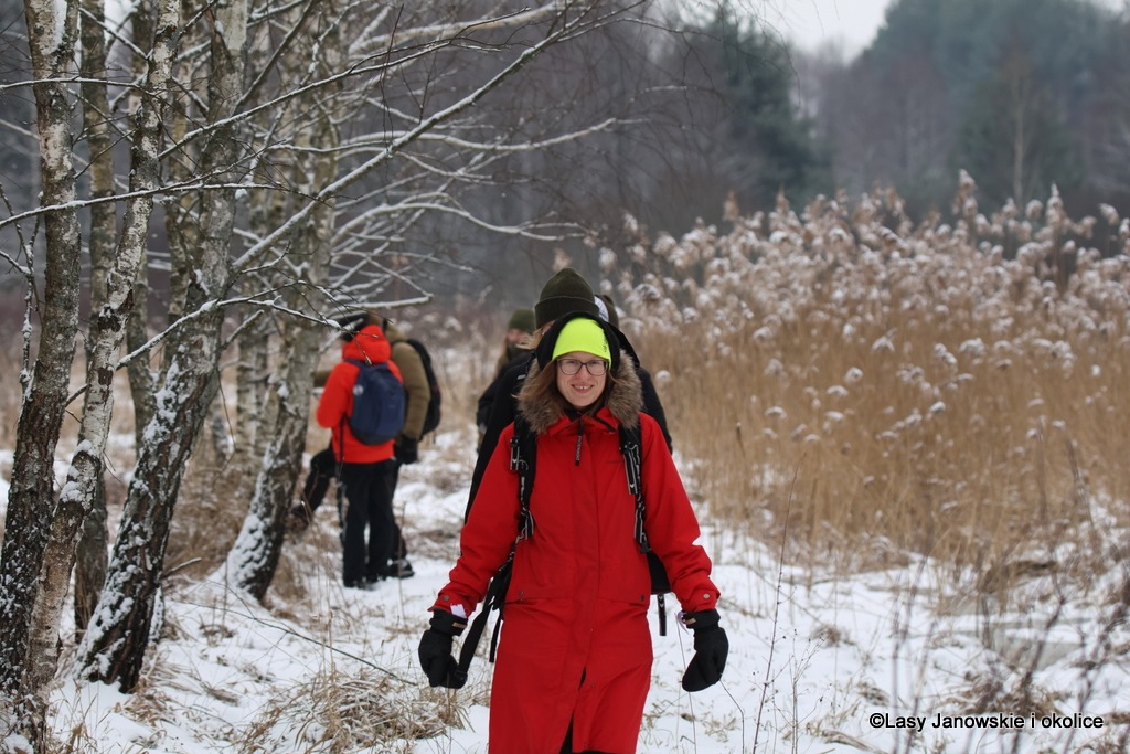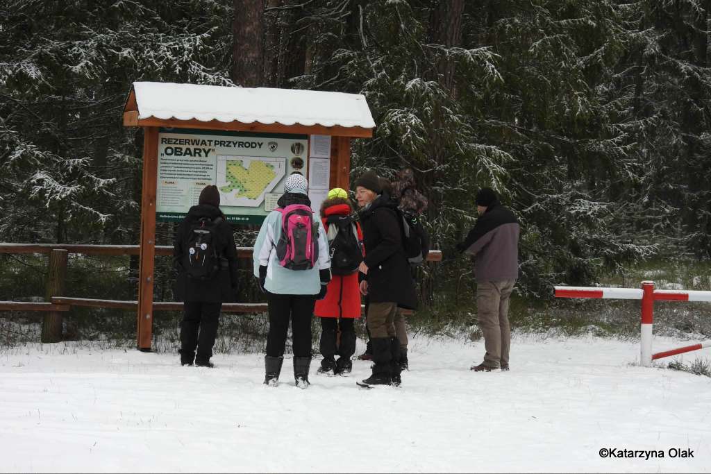 Zimowa wyprawa Grupy Eksploratorów Ścieżek i Bagien Lasów Janowskich do rezerwatu przyrody Obary i nie tylko. Nie tylko, ponieważ rezerwat, chociaż piękny, można obejść po wyznaczonym szlaku w pół godzinki, a nas interesowało dłuższe wałęsanie. Zatem wyszliśmy poza jego granice i powędrowaliśmy po okolicach. A są one momentami bardzo dzikie, ponieważ las jest tam bardzo zróżnicowany. Dużo zakrzaczonych lasów prywatnych, zarośniętych łąk, olsów, bagien, no i też typowego lasu gospodarczego. Zahaczyliśmy też o słynny zbiornik Mijak z wyspą w kształcie nutki.