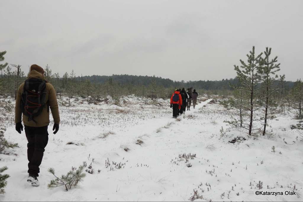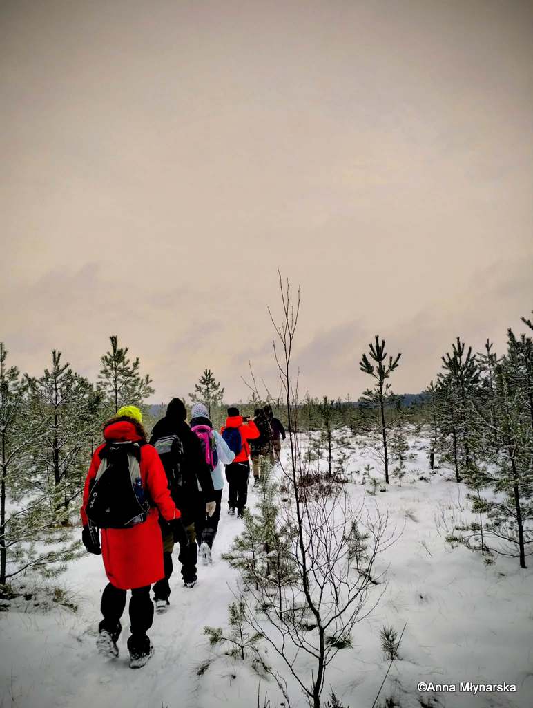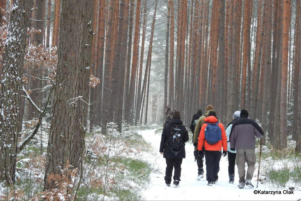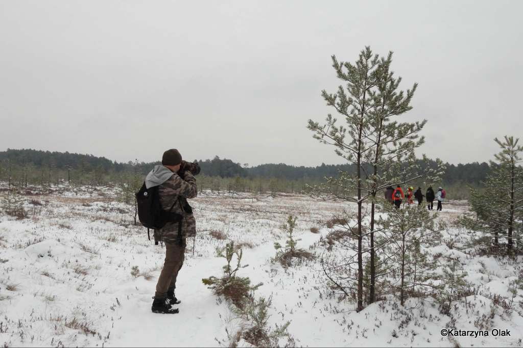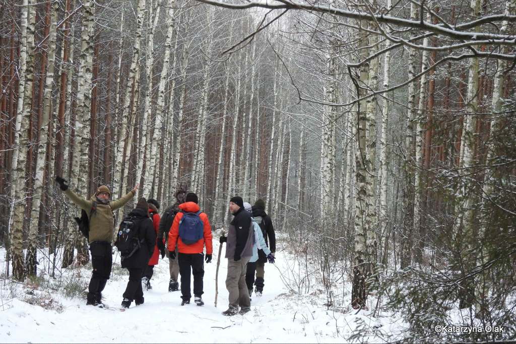 Zimowa wyprawa Grupy Eksploratorów Ścieżek i Bagien Lasów Janowskich do rezerwatu przyrody Obary i nie tylko. Nie tylko, ponieważ rezerwat, chociaż piękny, można obejść po wyznaczonym szlaku w pół godzinki, a nas interesowało dłuższe wałęsanie. Zatem wyszliśmy poza jego granice i powędrowaliśmy po okolicach. A są one momentami bardzo dzikie, ponieważ las jest tam bardzo zróżnicowany. Dużo zakrzaczonych lasów prywatnych, zarośniętych łąk, olsów, bagien, no i też typowego lasu gospodarczego. Zahaczyliśmy też o słynny zbiornik Mijak z wyspą w kształcie nutki.